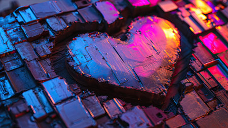 Shiny glass heart pattern. AI generated.