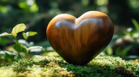 Love symbol heart shape, wood material, romance backgrounds, nature concepts generated by artificial intelligence