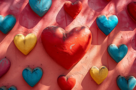 Creative and Vibrant Valentine Hearts on Textured Background, Capturing the Essence of Romance
