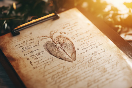 A vintage clipboard features a heart illustration with elegant handwriting and nature-inspired decor.