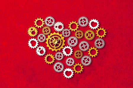 heart shape made of gears, red background