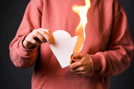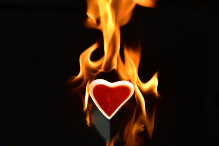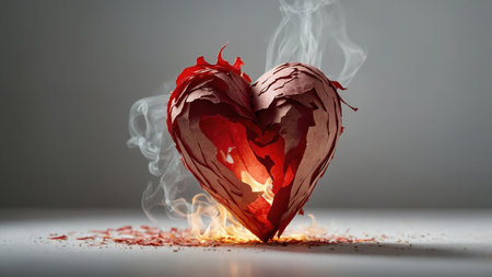 Heart engulfed in flames symbolizing divorce and heartbreak powerful concept imagery