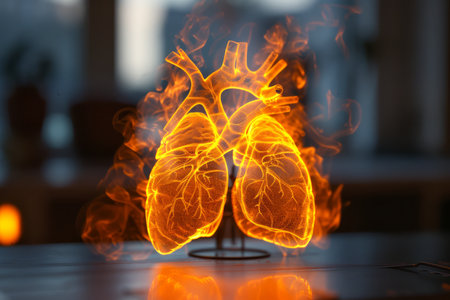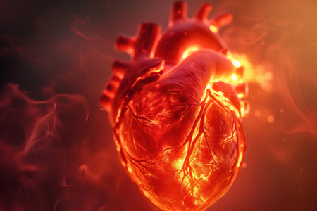 Anatomy 3D rendering illustration showing an inflamed heart AI Generative