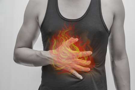 Fire in stomach. Excessive acidity gastritis gastric ulcer heartburn stomach disease.