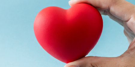 Valentine's day concept. a womans hand holds a red heart. Heart health care medical cardiovascular disease concept and organ donor donation for life