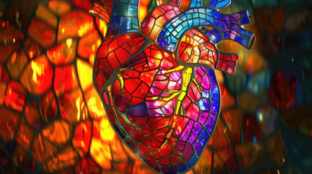 Colorful stained glass window of a heart close up