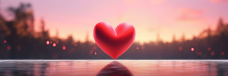 Red heart on colorful red background Valentines Day holiday greeting card banner