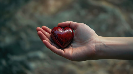 A striking red heart against a blurred background, symbolizing love and emotion, ideal for creative projects and romantic themes. Perfect for expressing feelings of passion and affection.