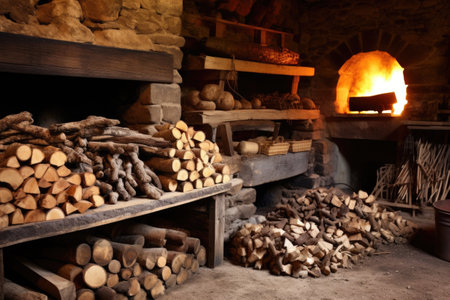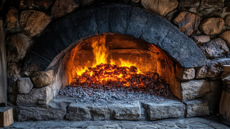 glowing embers in a traditional stone oven, created with generative ai
