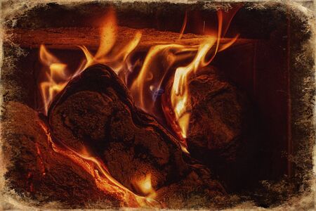 Cozy fireplace with burning logs