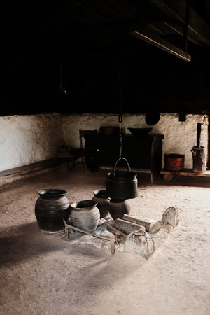 Preserving Tradition: Classic Hearth With A Pot Over The Fire.