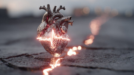 This captivating heart image showcases an enigmatic glow with vibrant pulse lines, symbolizing deep emotional connections and the beauty of vitality and life.