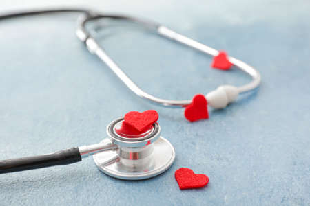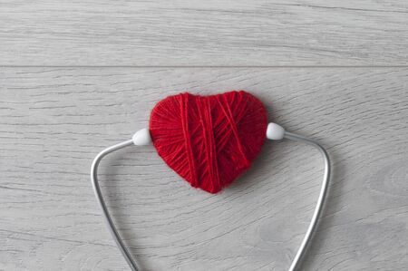 Stethoscope and red heart. Heart Check. Concept healthcare.