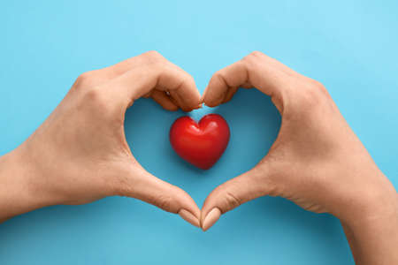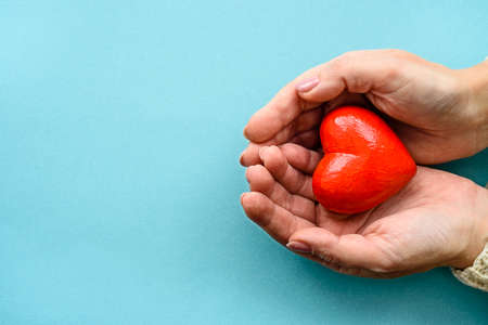 female hands holding red heart, world mental health day and world heart day, Life and health insurance, concept of love.