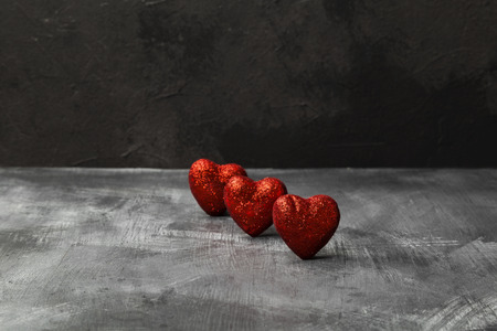 Love red hearts on dark background