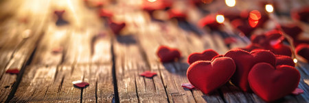 Lit Red Hearts on Wooden Surface - Warm Glow in Natural Setting, Valentine's Day Concept