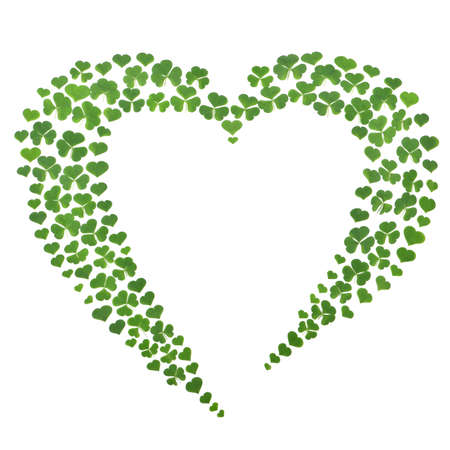 Green leaves in heart shape isolated on white background. St.Patrick's Day