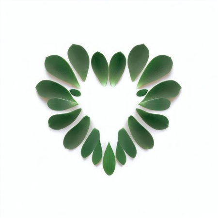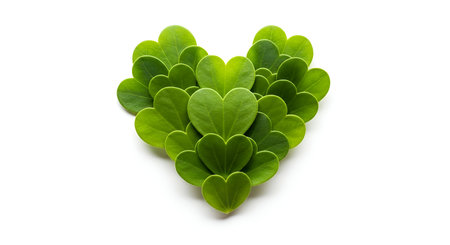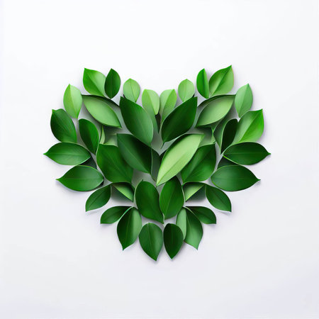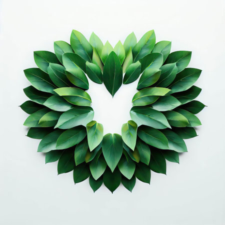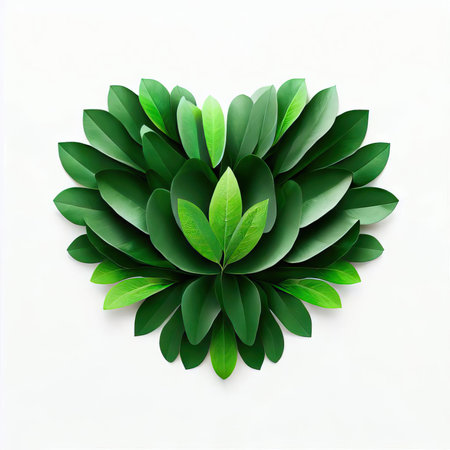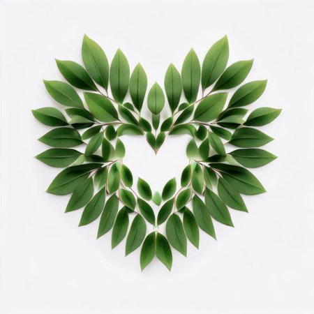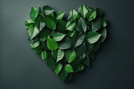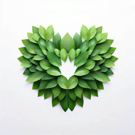 This image features a heart shape filled with vibrant green leaves, symbolizing love and nature. Perfect for eco-friendly and wellness themes.