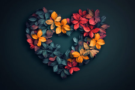 Vibrant Autumn Leaves Heart Shape Colorful Nature Design red dark love fall green plant image photo