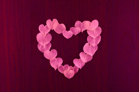 Heart shape of light green leafs against dark green leafs for Love valentine's Day Background.