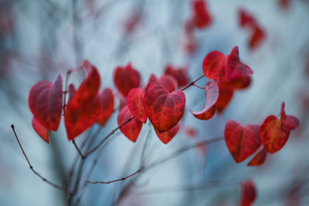 Autumn Leaves Heart Shape Romantic Nature Design Dark Background Elegant Fall Floral Botanical red