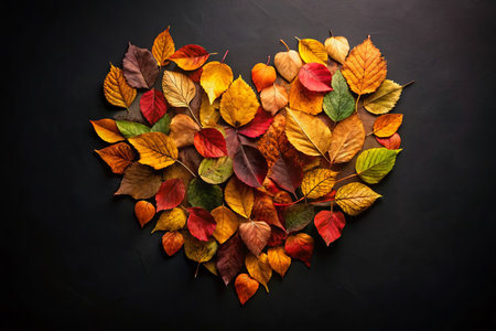 Minimalist Autumn Heart: Colorful Fallen Leaves on Black
