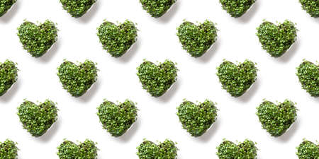 Seamless pattern of radish seeds microgreens in plate shape of heart.Concept vegan and healthy eating.