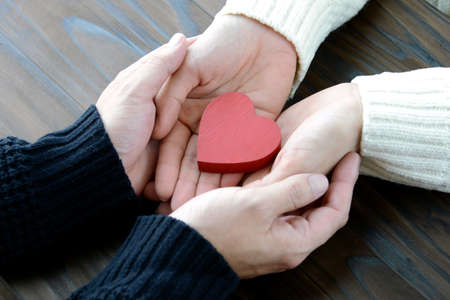woman and man hand holding red heart