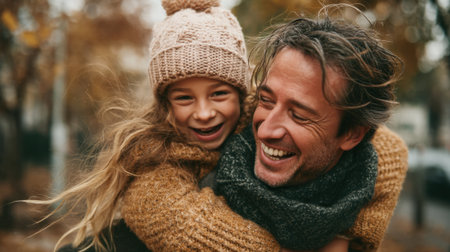 Father and daughter bonding outdoors in autumn.