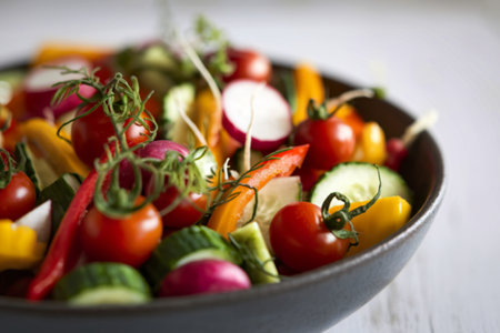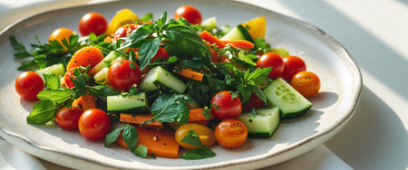 AI Generated. Colorful Vegetable Salad with Herbs on Plate
