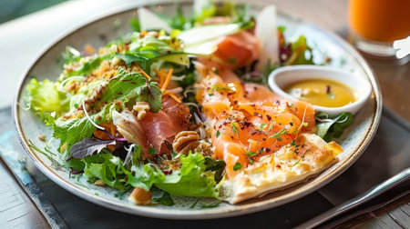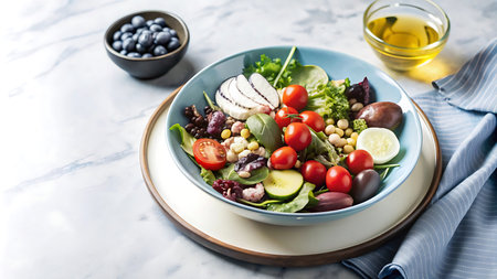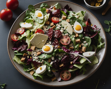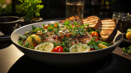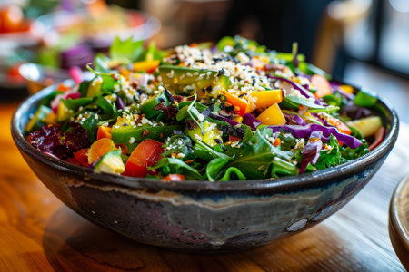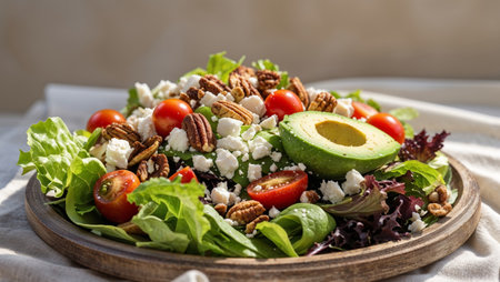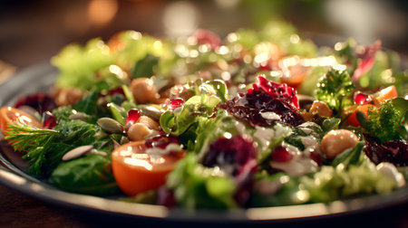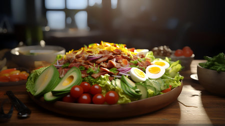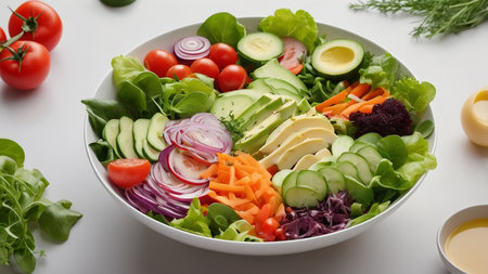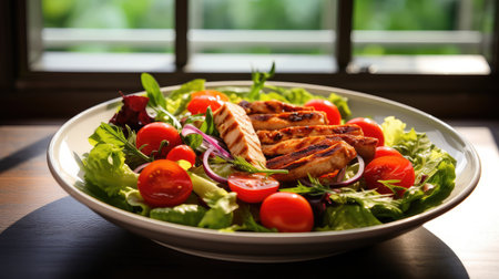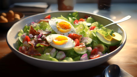 Indulge in a healthy and delicious salad bowl. Perfect for diet enthusiasts. Generative AI masterpiece.