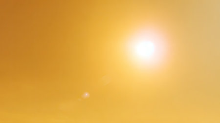 The image showcases a bright sun shining against a warm yellow sky, creating a calming and serene environment perfect for conveying peace and tranquility.