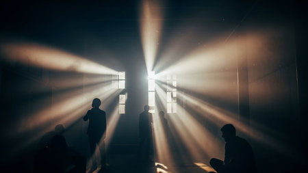 A close-up image of a hand holding a lighter, showcasing a vibrant flame against a dark, smoky background. The contrast of light and smoke creates a captivating mood.
