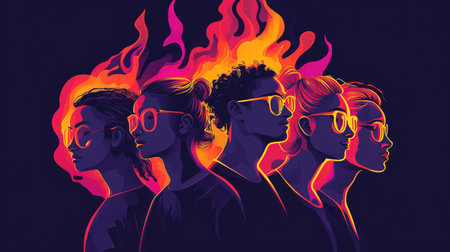 A silhouette of a man is outlined in radiant flames, embodying resilience and change amid a dynamic fiery background. The illuminating glow enhances the powerful presence.