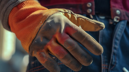 Extreme close-up of safety gloves with cut-resistant material, emphasizing hand protection in industrial and manufacturing settings