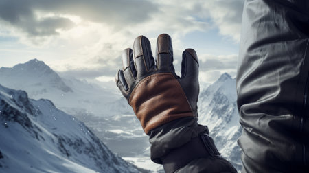 Person Wearing Gloves Standing on Snowy Mountain Top