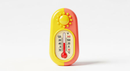 A thermometer displays temperature readings in Celsius with clear markings, set against a dark backdrop emphasizing its details.