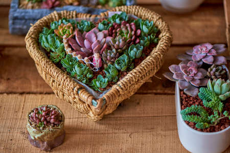 A vibrant display of colorful succulent plants in various shades showcases the beauty of nature and adds a lively touch to any garden or nursery setting.