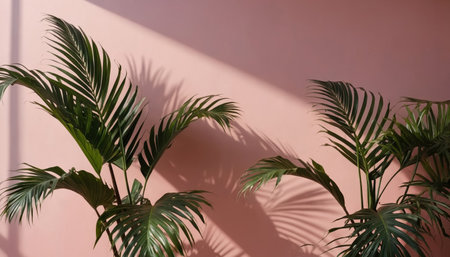 Generative AI : Beautiful light shadow on the wall from flowers and plants