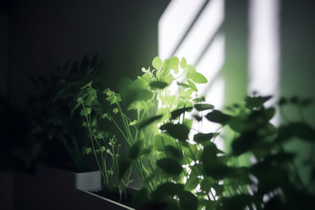 scene with close-up of green plant, soaking up the sun, created with generative ai