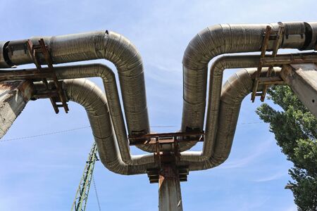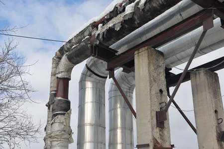 Overground heat pipes. Pipeline above ground, conducting heat for heating the city.