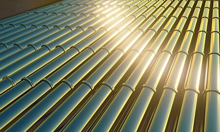 A modern pressure collector for heating domestic hot water, close-up on the ends of a vacuum tube.