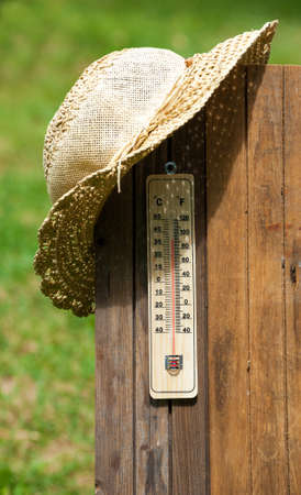 Thermometer on wooden background