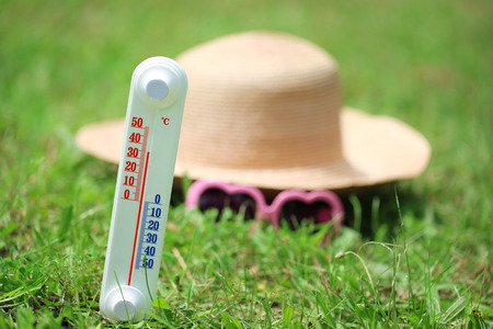 Thermometer on grass close-up