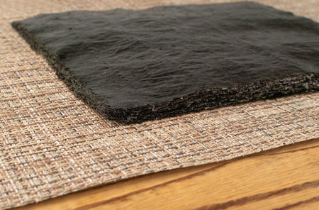 Nori Sheet Stack, Dried Aonori Seaweed, Dry Sea Weed, Seaweed Sheets, Nori Seaweed Pieces on Wood Table