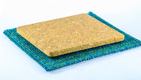 AI Generated. Square Brown Woven Mat on Light Wood Tabletop