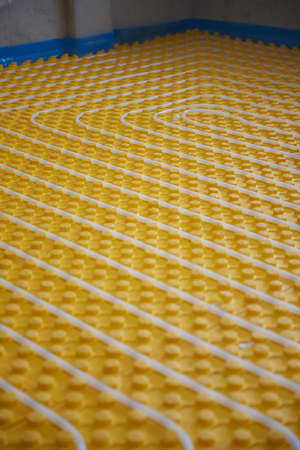 yellow underfloor heating posed in a under construction building