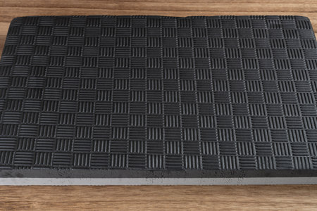 close up of colorful yoga mat on the table, sport and healthy concept, texture