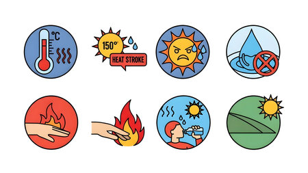 A digital thermometer shows a high temperature reading with a red warning icon, alerting users to potential heat-related risks amidst a clean background.