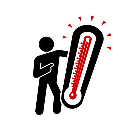 The guy is standing on the beach near the thermometer, he is very hot. Heat weather vector illustration